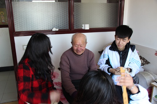 走进敬老院,没有孩童的吵吵闹闹,没有年轻人们的忙碌身影,有的只是老人们安安静静的坐在自己位置上,时而和身边的人闲聊几句,屋子里也只能听到电视机里节目的声音。同学们的到来,让每间屋子热闹了起来,老人们的脸上也洋溢起灿烂的笑容。老人拉起同学的手让同学坐到他们身边,虽然只是一个简单的动作,但却体现了老一辈对年轻一辈的关心与疼爱。