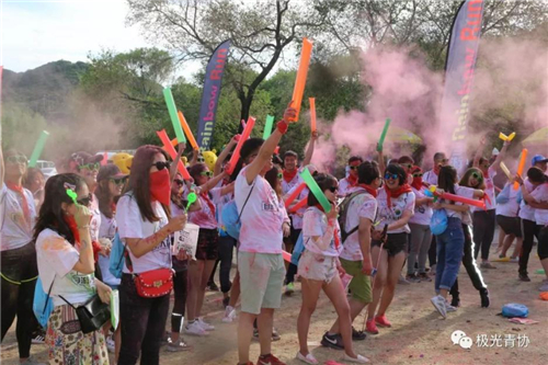 | | 2018第四届长春彩跑狂欢节--小猪佩奇告白季在五月二十日这个充满爱意的一天在莲花山这个充满生命的地方开始了。 志愿者们提前几个小时准备出发,去往莲花山路上,志愿者分为两批到达目的地,到了莲花山后,负责人为每一位志愿者分发了专门的衣服。之后简单的了解,按照之前安排好的工作任务进行分配与调整,各成员有了自己任务,开始前往任务场地。 首先是装参赛人员的背包,背包里分别有一个胸章,一个小猪佩奇的贴纸,一件衣服,还有一袋子彩粉,其次负责装彩粉,将五颜六色的彩粉装进喷壶里,以便在活动时供大家玩的开心。还有一部分小伙伴负责灌水汽球,给大家一个调皮的玩笑,一些准备工作完成后,志愿者们前往莲花山站点领取志愿者背包,换好服装后,各成员前往工作区域待命,等待着彩虹跑开始。 大约三点多,参赛者到达了场地,彩虹跑开幕式便开始了。主持人进行了简单的活跃气氛,参赛者兴致勃勃从起点出发了,等待他们的将是一个一个彩虹站的洗礼,志愿者们也早已准备好了喷壶。准备接受我们的挑战吧! 彩虹路线全程3.5公里。沿途设置三个分站,每经过一站就是一个关卡。很快每个人脸上都布满了无颜六色的彩粉,身上也变的花花绿绿的,脸上洋溢着像彩虹一样的笑容。大家一起打打闹闹,享受着欢快的过程到达了终点。 活动结束后,负责人准备了乐队,和最后一波彩粉大站。欢快的时间总是短暂的,很快一天的活动也落下了帷幕。最后志愿者和参赛人员一起合影留念,记录这美丽的瞬间。