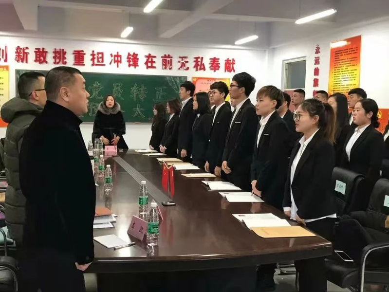 会议由响亮的中华人民共和国国歌开始,每个人都严肃的唱起国歌展现着新一批中共党员的精神与风貌。紧接着,15位员工宣读了自己的入党志愿书,并分别向党组织汇报了自己的优缺点和未来的努力方向。随后,9位预备党员宣读了他们的转正申请书,并希望党组织继续考验他们。