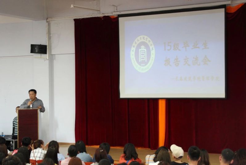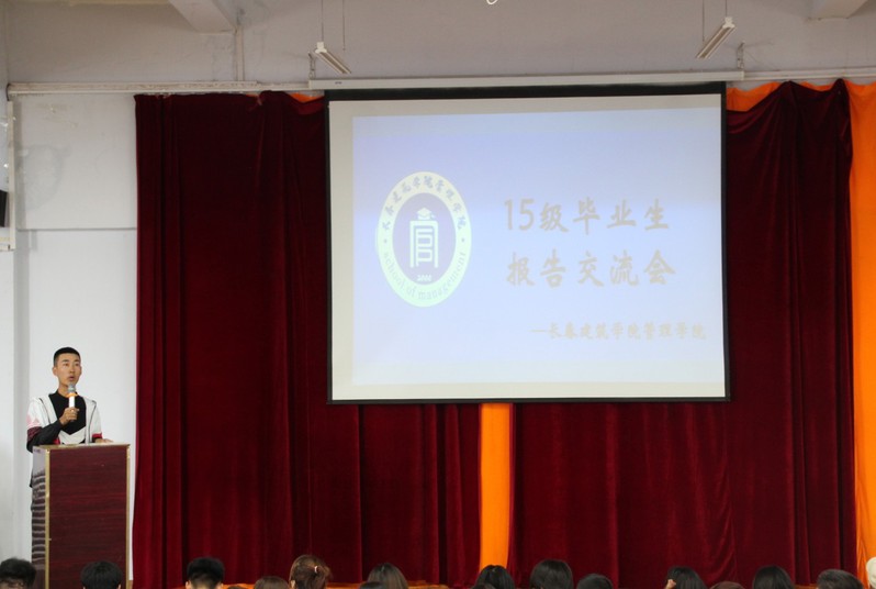 毕业实习生代表赵世博学长为大家讲解了一些有关于企业实习的认识以及所需要具备的能力,同时严科敏学姐也为大家讲述了自己在企业实习中的经历,在实习时态度决定了一切。