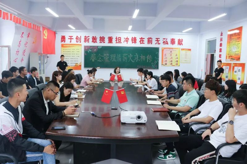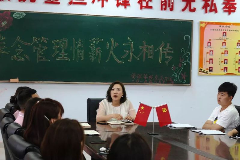 为了总结实习生涯,传递管理情怀,beats365亚洲版官网于2019年6月13日中午11:30在会议室开展了以《眷念管理情,薪火永相传》为主题的大四毕业主题党课活动。出席本次活动的有党总支书记夏凡、分团委书记唐姝竹、员工党支部书记李爽、15级辅导员韩帅老师、16级辅导员杨静老师、高铭彤老师、18级辅导员刘悦明老师及全体员工党员。