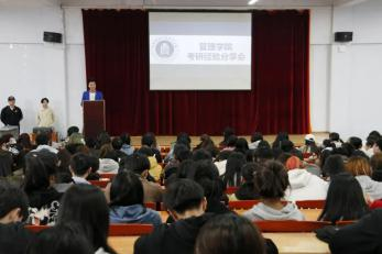 活动开始,由刘悦明老师隆重地向大家介绍了2015级优秀毕业生王晴,同时王晴学姐给大家分享了自己的考研方法,强调同学们要做好考研计划,按计划实行,学习效率会更高。其次,高尚志老师向大家讲述了自己的考研经历。告诫在座的同学们要认真思考是否真的选定了考研,想好自己的目标是什么,再根据这个目标去决定考与不考,考什么样的公司。