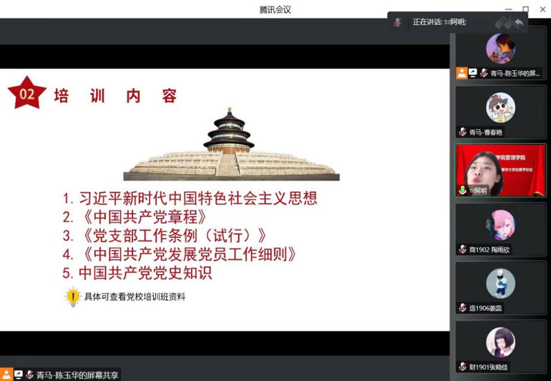 首先刘悦明老师向大家介绍了党课的培训内容以及相关培训计划。她指出成为入党积极分子是每位同学向党组织靠拢的起点,此次培训就是引导和教育入党积极分子深刻学习习近平新时代中国特色社会主义思想要义、精神实质、丰富内涵和实践要求。