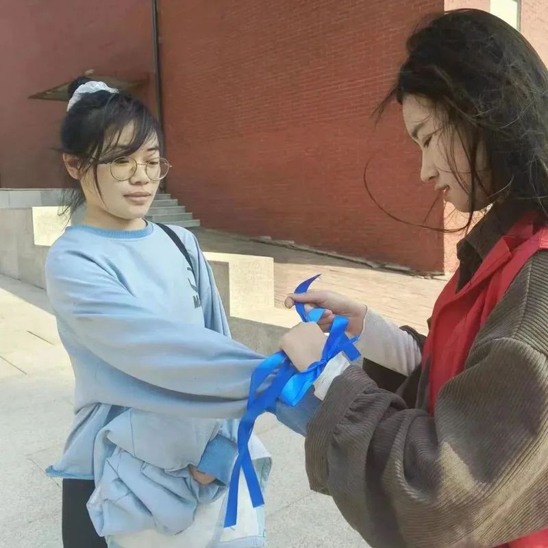 活动当天,这22名参与活动的志愿者还按照事先分组,在市区轻轨车站、公司及周边,手持蓝丝带及“我接纳”“我理解”等孤独症日倡导语,与路人合影,并为其系上蓝丝带,传递爱心,践行“爱让春城飘蓝”活动主题。