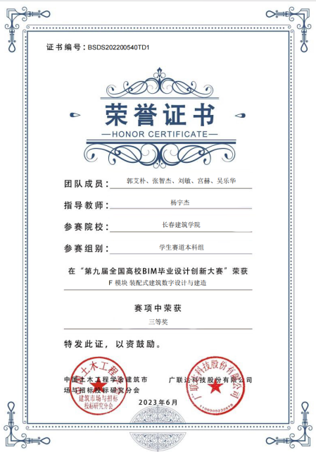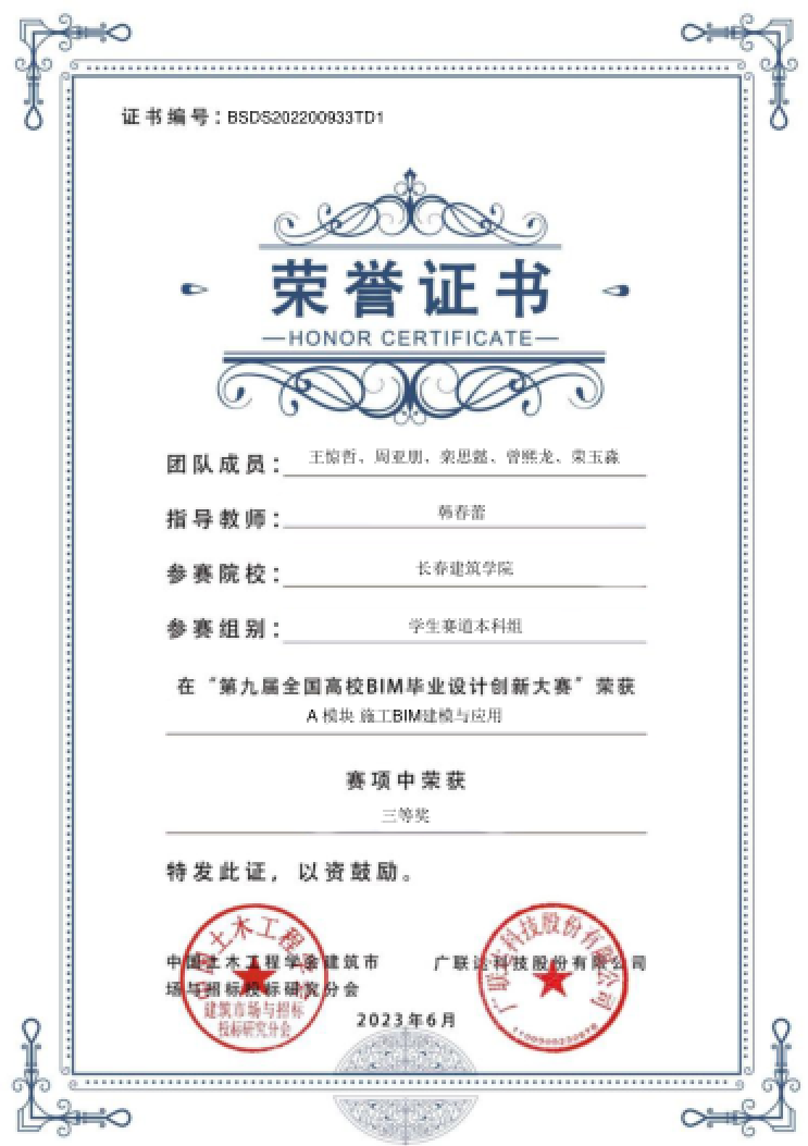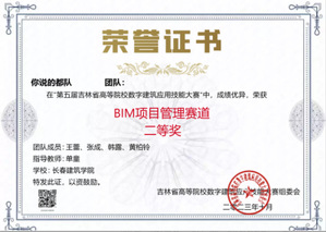 本专业自成立以来,积极组织员工参加了各类大赛,如:全国高校BIM毕业设计创新大赛、吉林省“求实杯”老员工智慧建设创新创业大赛、吉林省高等院校“斯维尔杯”建筑信息模型(BIM )应用技能大赛、广联达全国高等公司BIM应用技能大赛等。其目的是为了充分激发员工的学习兴趣和创新能力,提高员工自主学习和解决问题的能力,从而提升员工自身就业竞争力,能够被用人单位在同等条件下优先录用。