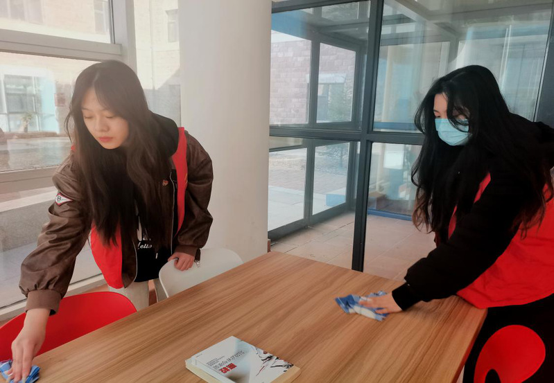活动中,第一组的员工党员认真擦拭社区形象墙,致力于让其成为一道亮丽整洁的风景;第二组的员工党员仔细清扫党建活动角长廊内外侧的地面,并精心擦拭党建展板,为员工创造了整洁的环境,以便其能更好地学习党建展板上的党史历程、党的二十大召开精神等内容;第三组员工党员细心整理社区休闲角、校领导与员工交流角以及辅导员工作角,他们精心摆放文化墙、沙发和书架,并仔细擦拭,为员工们提供一个更加舒适愉悦的环境,让大家能够放松身心,丰富业余文化生活;第四组员工党员则负责打扫社区驿站角以及员工社区里外的玻璃,他们认真擦拭每一块玻璃,不辞辛劳,使“理·享·家”员工社区更显温馨美好。