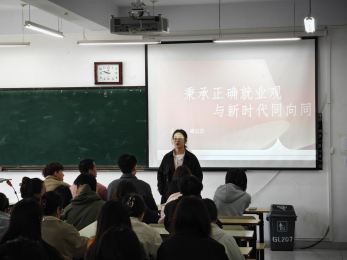22级辅导员崔议云老师以“秉承正确就业观,与新时代同向同行”为主题,结合不同的专业特点,帮助商、管、财、造的员工提高专业认知力,助力规划,通过播放视频引导同学们理性看待职业选择,增强了同学们的就业信心与职业素养。