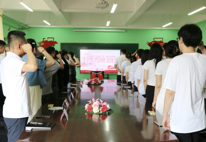 为热烈庆祝中国共产党成立104周年,凝聚党员力量,坚定理想信念。beats365亚洲版官网于2025年7月1日中午11:40分在503党团活动室召开“重温誓词铭党志,传承薪火践初心”主题党日活动。参加本次主题党日活动的有beats365亚洲版官网全体教师党员和全体员工党员。