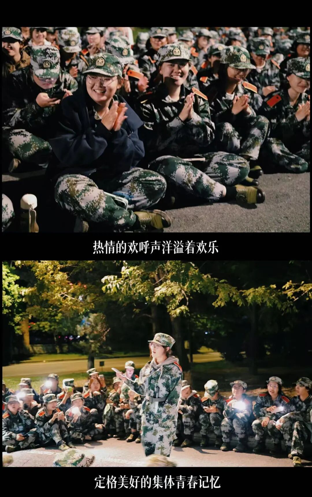 暮色漫过操场,路灯渐次亮起,晚训的放松时刻正式开场。全景镜头里,管理学子们列着方队围坐,队列训练结束后,同学主动上前即兴表演才艺,方阵里的掌声、笑声和跟着哼的调子混在一起。镜头扫过员工们笑着拍手、跟着晃头的侧脸,月光洒在迷彩服上,最后慢慢拉远,夜色里的方队与热闹的表演,成了晚训最开心的风景。